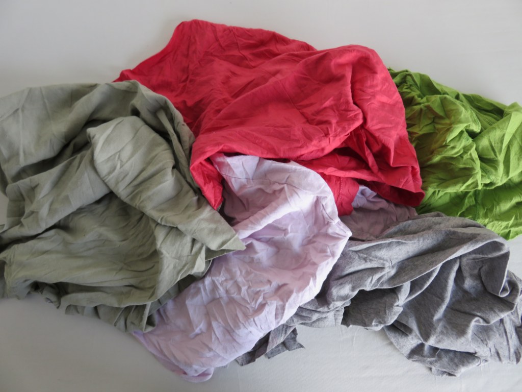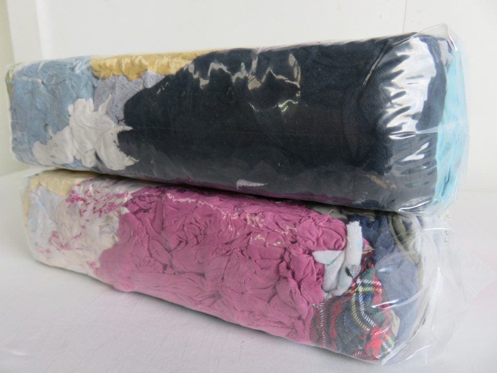 Handy compact small packet of cleaning rags which stacks easy on the shelves and takes up less space than normal bags. These packages are very popular for contractors and maintenance personal. Colour knit cotton T-shirt material. A soft, low linting general purpose cotton rich wiper ideal for many applications commercially and industrial. Good for wiping and cleaning liquids, grease and oil, inks. Best suited for general maintenance, automotive, mechanical, printers.